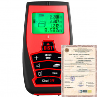 Лазерный дальномер Mettro CONDTROL 100 Pro – это единственный 100-метровый дальномер на рынке, который позволяет уверенно наводиться на цель на больших расстояниях, что обеспечивается прицелом на корпусе и возможностью установки 4-х-кратного визира с просветленной оптикой. Такая возможность позволяет уверенно использовать прибор как внутри помещений, так и для проведения наружных работ. Лучшее соотношение цена/качество среди профессиональных дальномеров. Эргономичный дизайн и обрезиненный корпус позволяют удобно держать его в руке и защищают от ударов, а набор функций способен удовлетворить самого взыскательного пользователя. Прибор обладает встроенным таймером, возможностью использовать задаваемое постоянное значение (constanta), что позволяет автоматически прибавлять или вычитать установленное значение. Результаты измерений выводятся на большой четырех строчный графический дисплей с подсветкой.