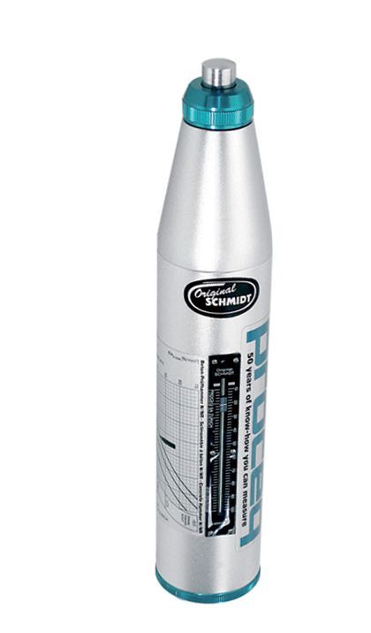 Из всех устройств, которые сегодня называют склерометрами, молоток Шмидта – один из наиболее распространённых инструментов для неразрушающего контроля прочности бетона. Принцип работы устройства в том, чтобы измерить ударный импульс, который возникает в результате приложения к поверхности нагрузки в виде удара с упругим отскоком. Приводимый в действие за счёт системы пружин ударный плунжер бьёт по бетону и возвращается в исходное положение. Чем прочнее материал, тем сильнее отскок.Результаты измерений отображаются в МПа. У сверхпрочного бетона твёрдость может превышать 100 МПа, у свежего – в пределах 1–10 МПа, у обычного затвердевшего – от 10 до 100 МПа. Правда, молотки Шмидта могут применяться не только для бетона, но и для кирпича, камня, блоков, плитки, бордюров, различных строительных смесей.